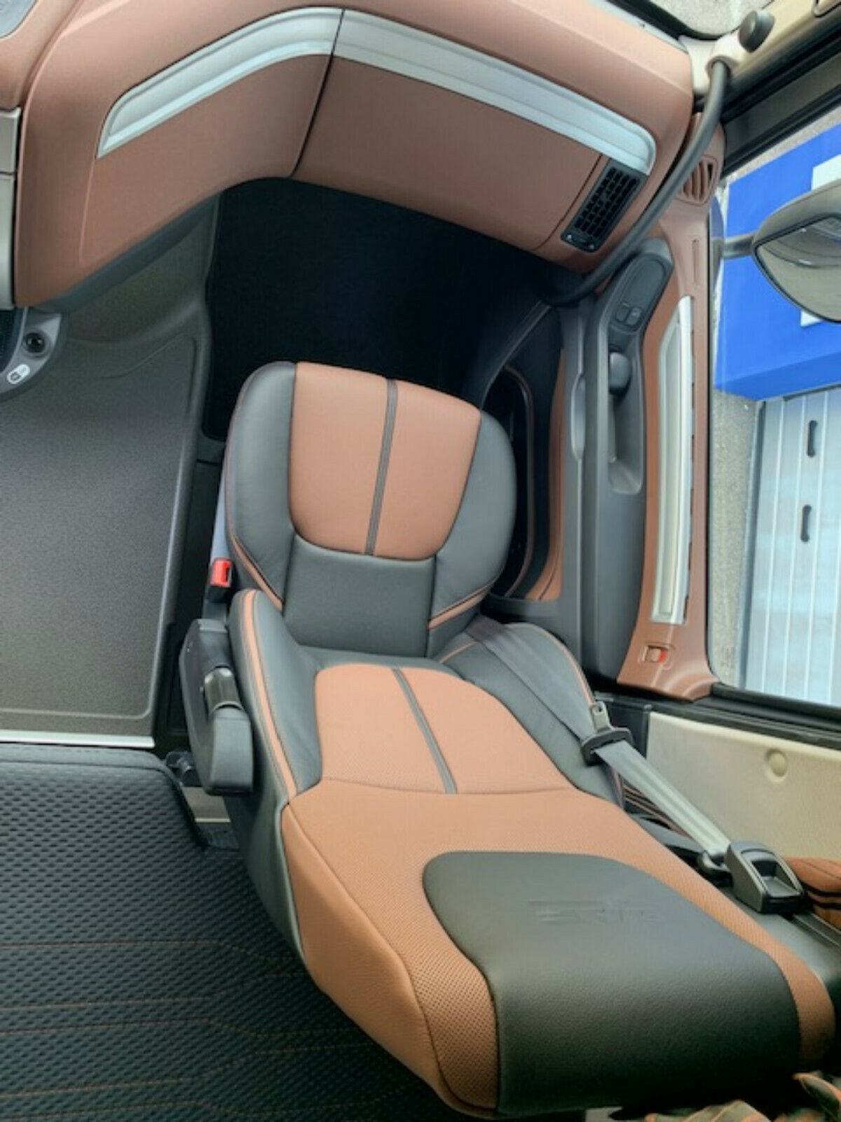 latéraux de garde – boue latéraux , cuir, garniture intérieure exclusive Design exclusif Habitacle de la cabine, habillage des portes en cuir Argenta Siège du conducteur : Xtra Cuir Air Siège du passager: Air conditionné / réfrigérateur Xtra Cuir Couchette inférieure avec tiroir 65 litres Couchette inférieure du matelas Xtra Comfort